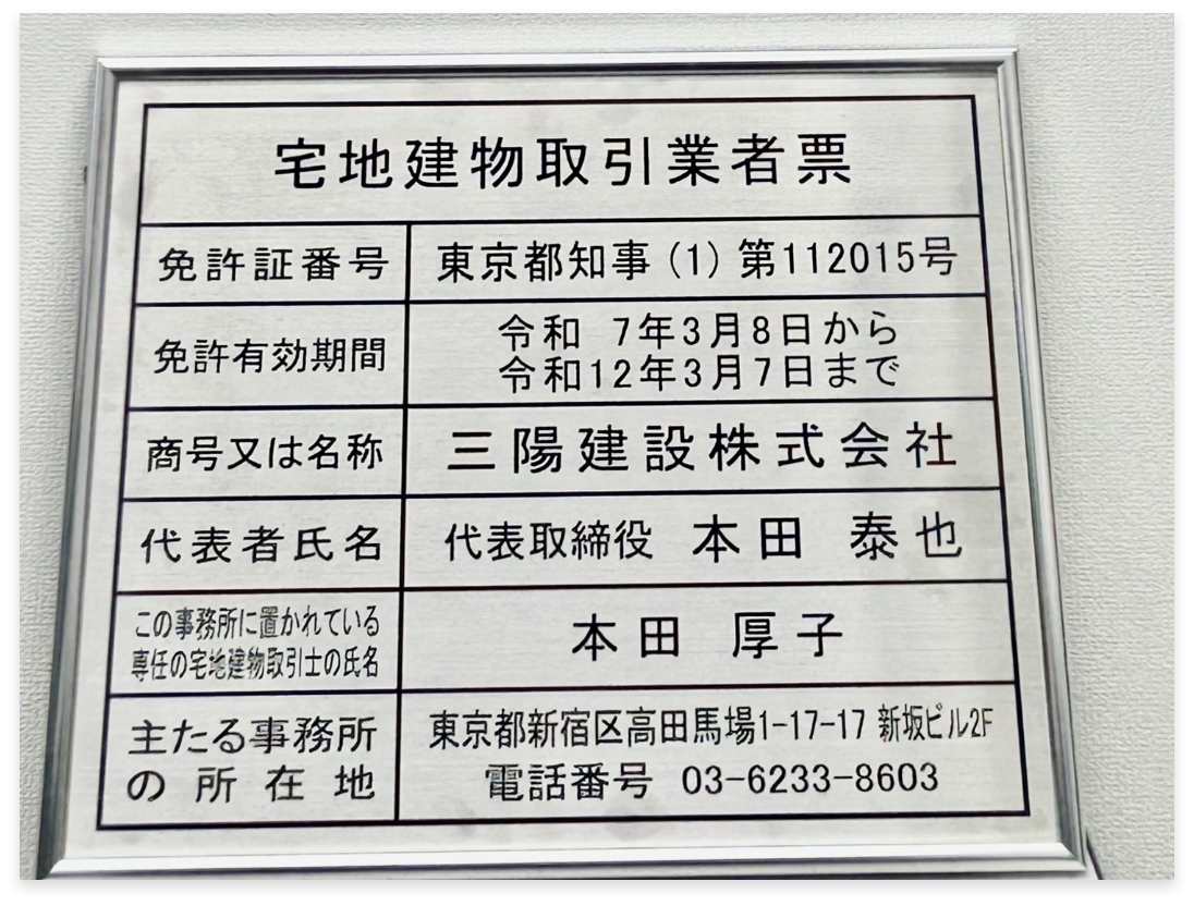| 加入団体 | (公社)東京都土地建物取引業協会 東京都宅地政治連盟 (公社)全国宅地建物取引業保険協会 東京都建物協同組合 |
